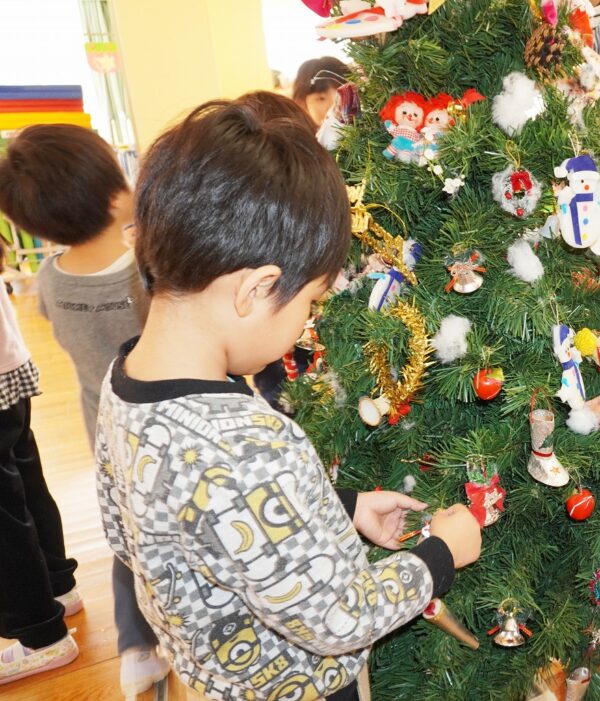 今日は来月のクリスマスに向けて大きなツリーの飾り付けをみんなでしましたよ!