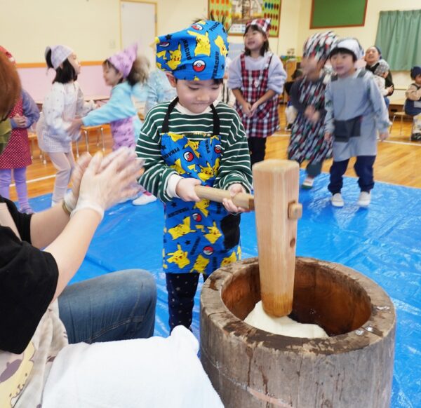 12月おもちつきをしたよ!つきたてをみんなで食べました♪