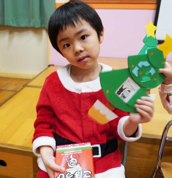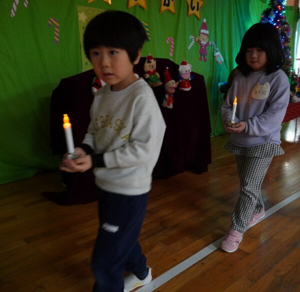 MerryXmas!今日はみんなが楽しみにまっていたクリスマス会が開催されました。おごそかなキャンドルサービスのあとはサンタさんがプレゼントを持ってきてくれましたよ!またお昼はお待ちかねクリスマスバイキングでごちそうをたくさん食べました!デザートにケーキもあって大満足のXmasでした・・